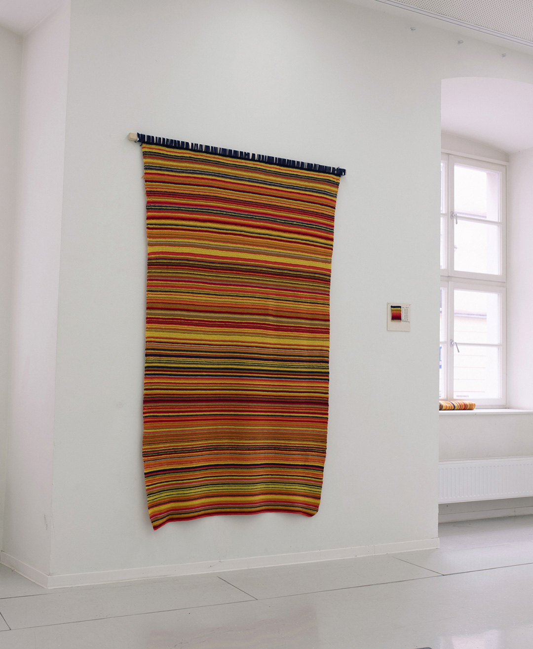 Since February 2024, Eleonora Hrybniak has been translating the air alarms in Odesa into large­format crocheted blankets. She collects the alarm data and weaves it into a continuous textile calendar of the war, with the duration and frequency of the acoustic warning signals incorporated in colour. Luftalarm (Air Alarm) documents everyday life under threat – each stitch representing one day of war. Crocheting becomes a sort of archiving of the war – and is also a silent, ongoing act of resistance made of wool.