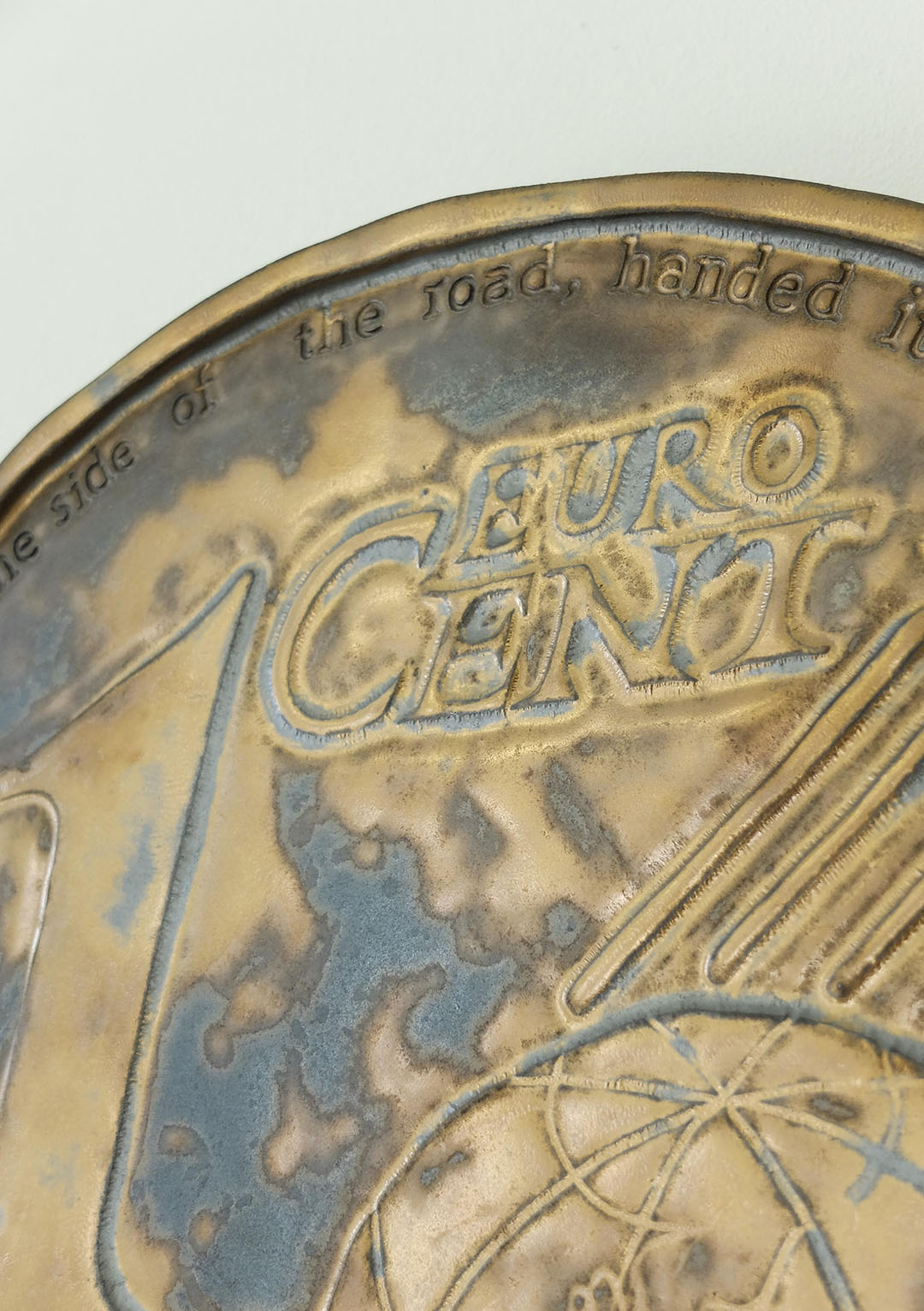 Yao Wang kommentiert mit One Cent die Absurdität des monetären Wertes. Das gleichnamige chinesische Kinderlied von 1963 lobt ein Kind, das eine gefundene Münze einem Polizisten aushändigt. Die von Wang schon im Kindergarten auswendig gelernten Liedzeilen hallen, als patriotisches Narrativ, auf der keramischen Nachbildung einer Eincentmünze nach – einer Münze, die heutzutage kaum noch jemand aufheben würde.