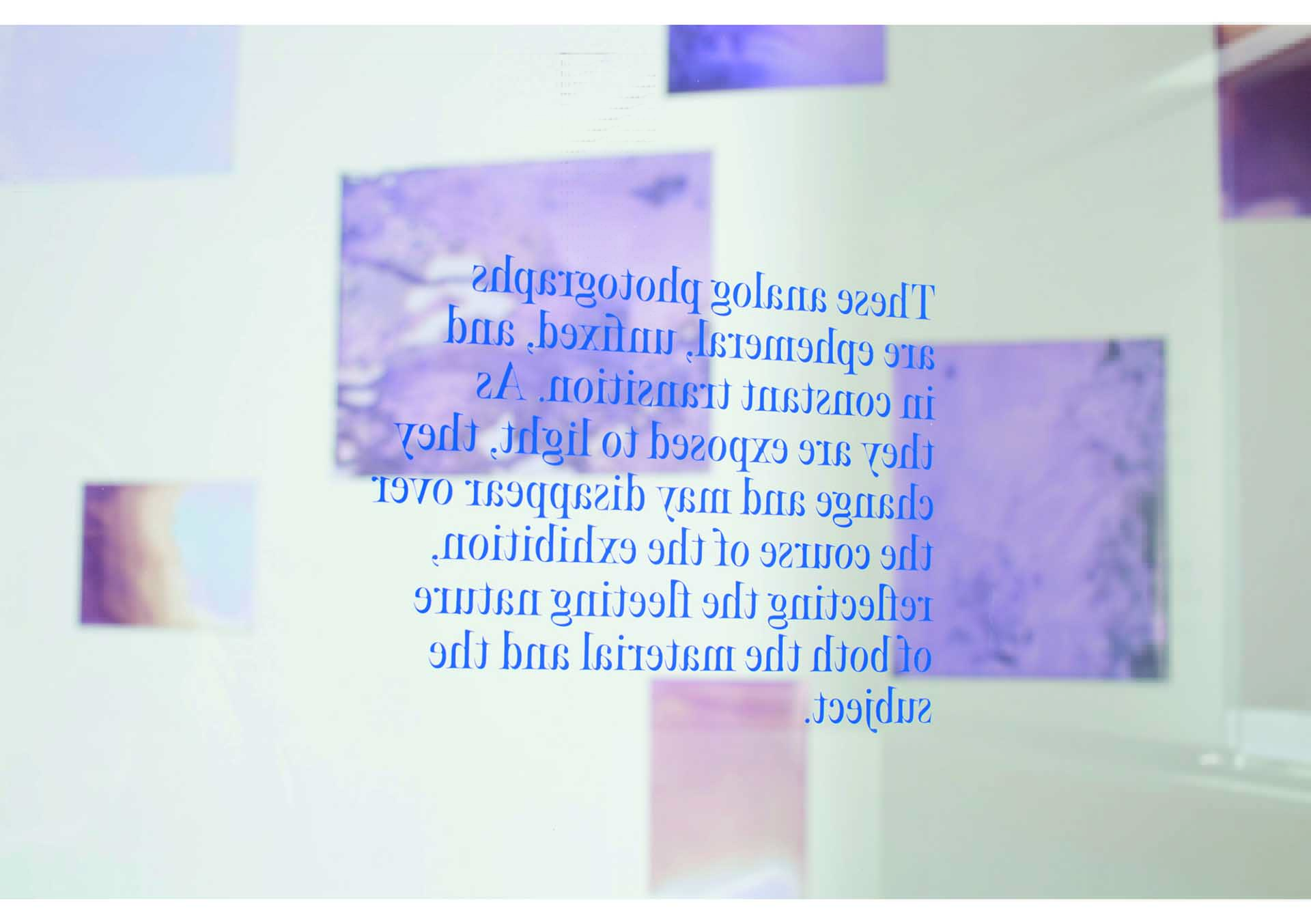 2025, Lumen prints, series of watergrams, various dimensions; publication, riso print, 96 pages, 28.7 × 10.5 cm